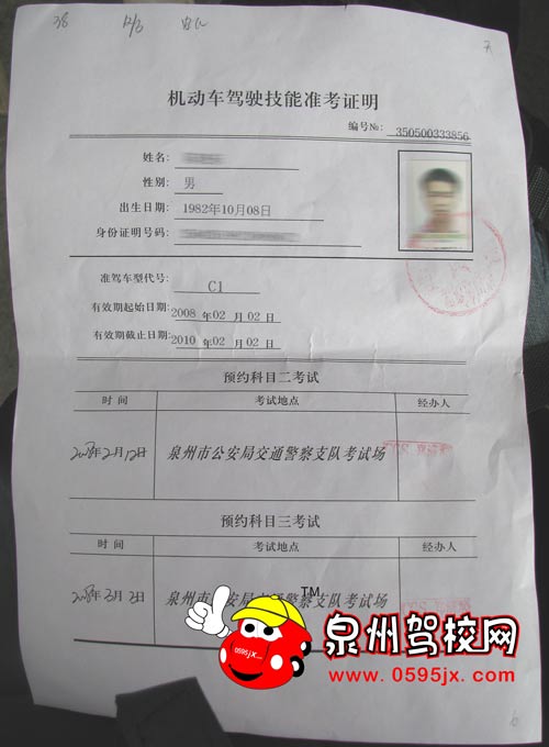 机动车驾驶考试准考证
